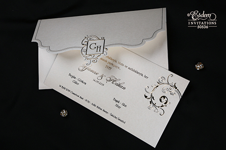 Faire part de luxe chic ivoire et or forme rectangulaire