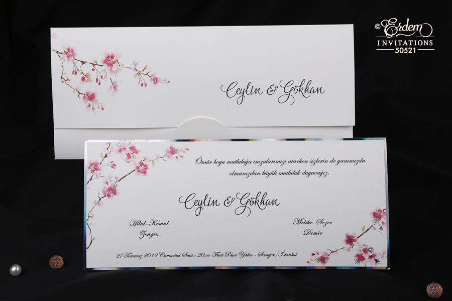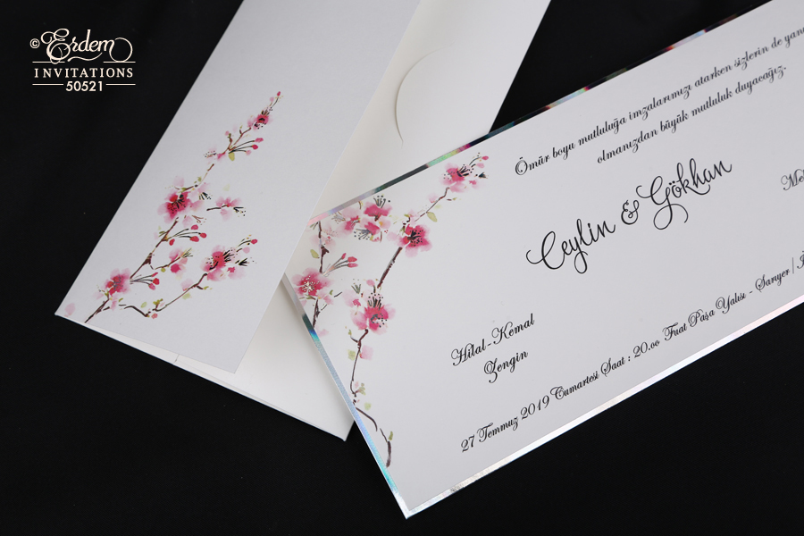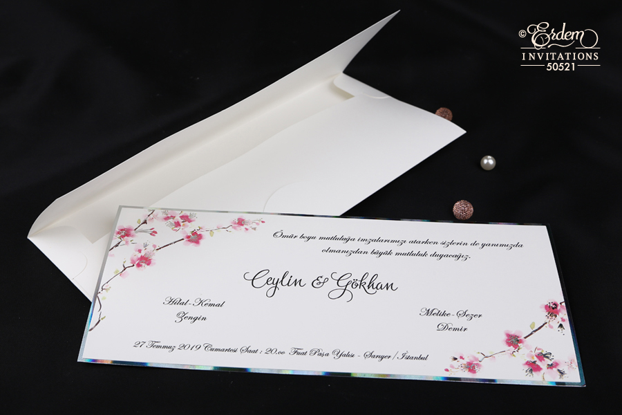 faire part fleurs contour argenté rectangulaire avec enveloppe fleurie