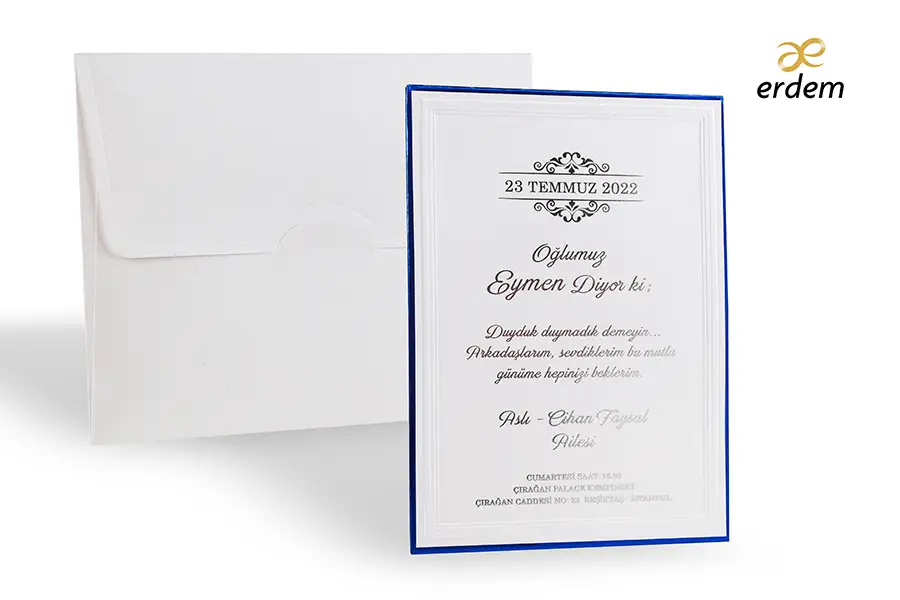 Ce faire part est un modèle qui peut s’utiliser soit pour les mariages à thèmes bleu, pour les baptêmes également ainsi que les Bar Mitzvah. Il est ainsi constitué de trois éléments.