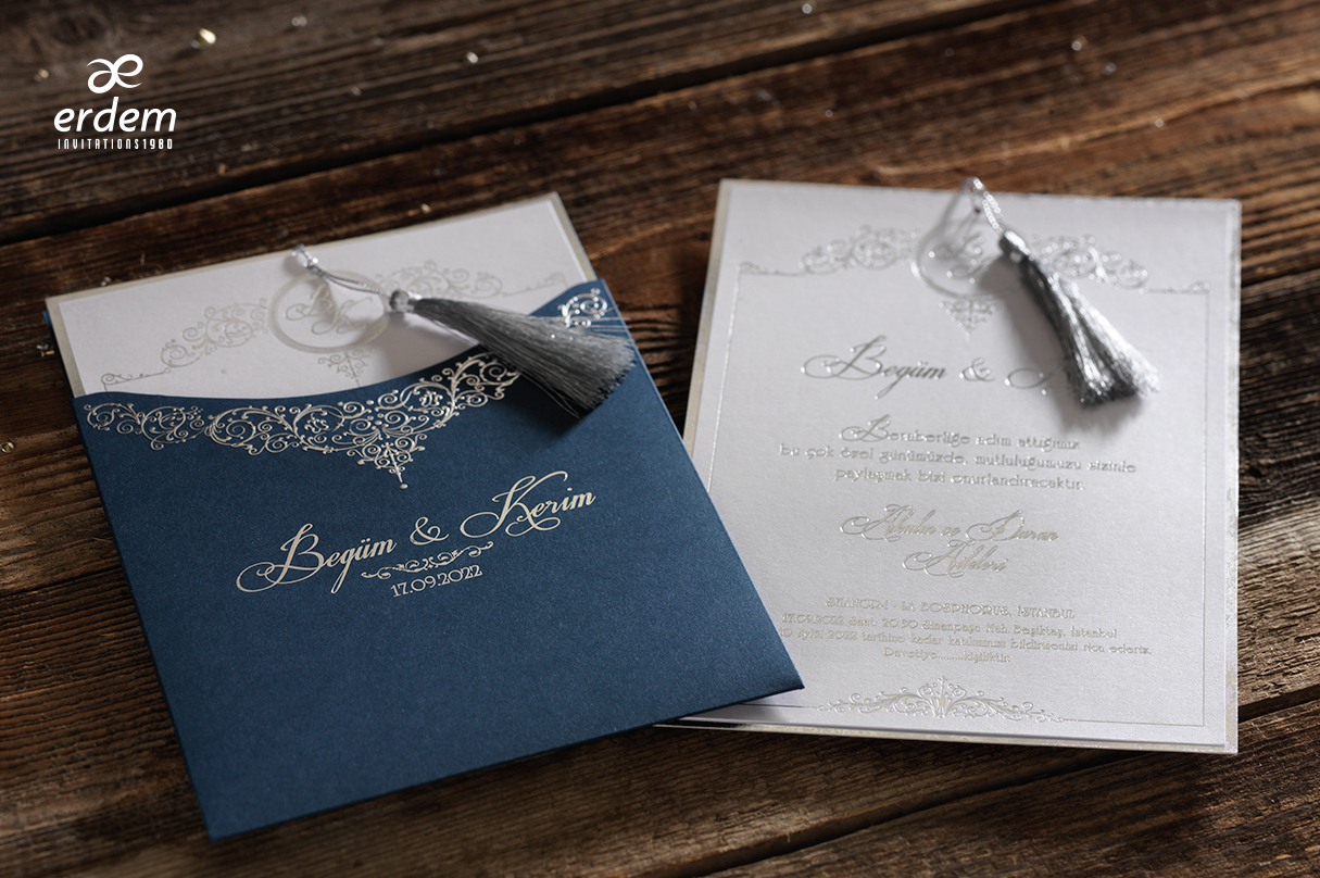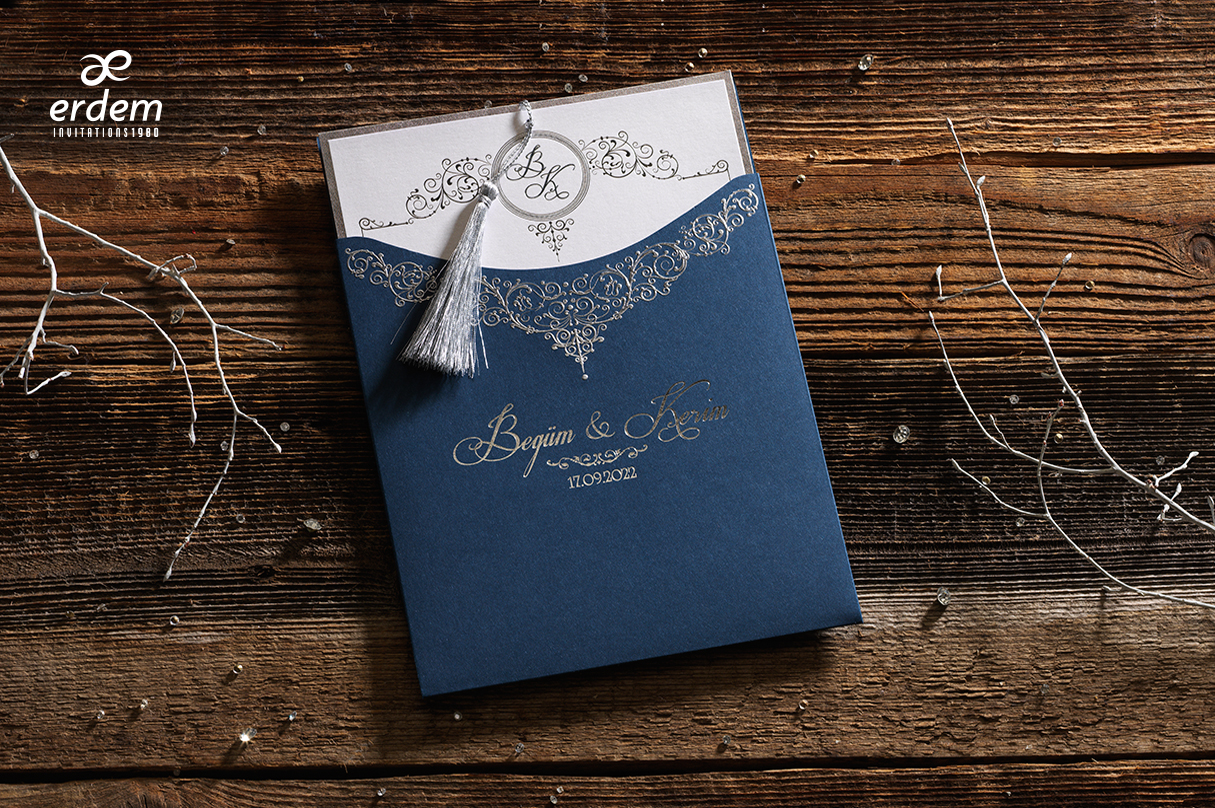 Ce faire part de couleur bleu peut à la fois convenir pour les mariages mais il peut également convenir pour les naissances ou baptêmes de garçons. Ainsi ce faire part est tout orné de motifs argentés. Il est donc constitué de 3 éléments.