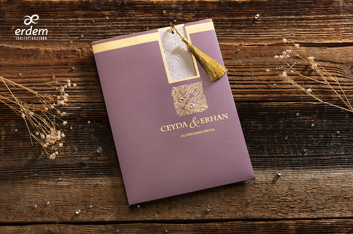 Ce faire part est en couleur violet clair avec du doré. C’est un faire part idéal pour les mariages qui ont pour thème le violet.