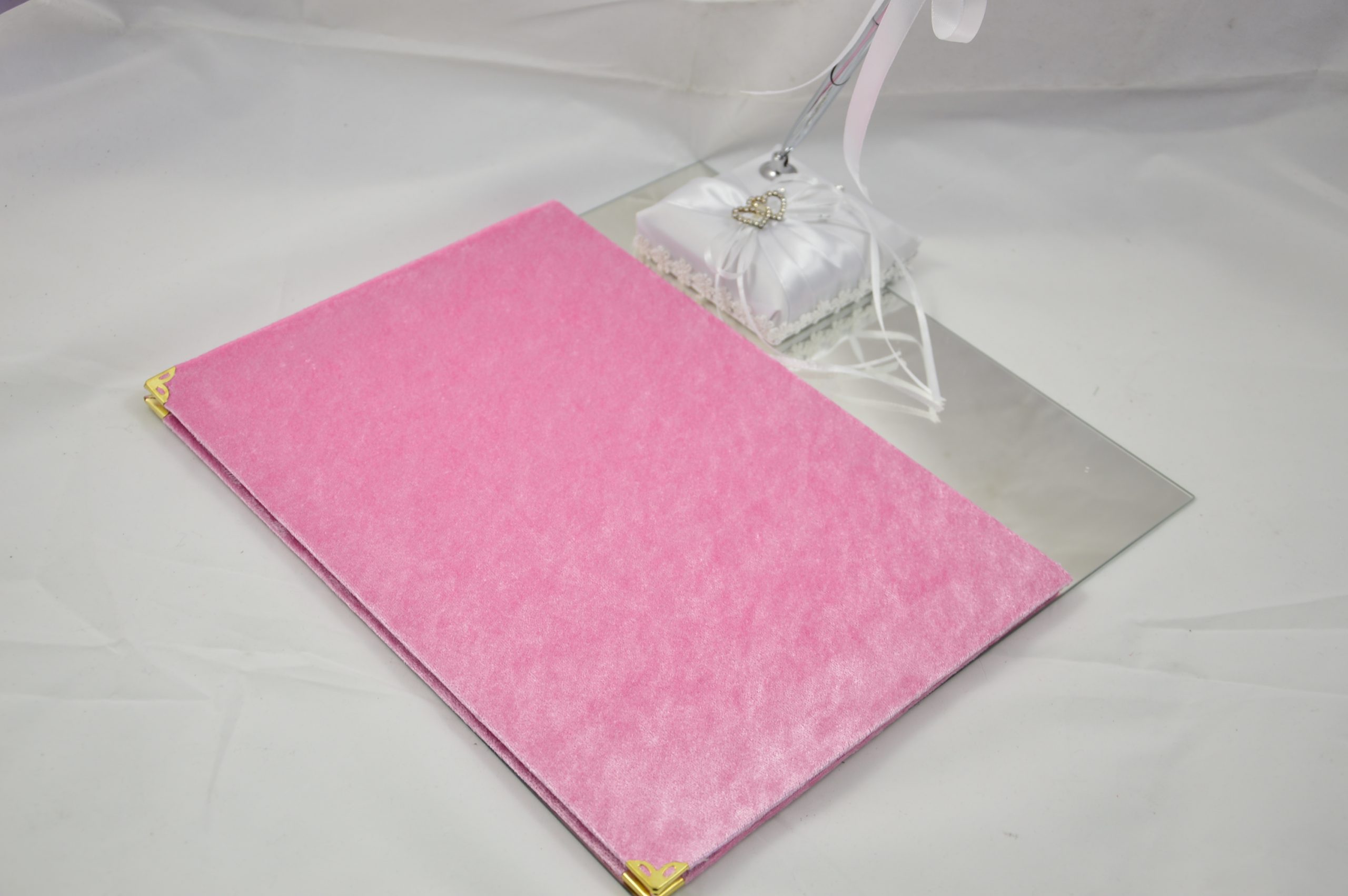 Ce livre d’or est entièrement recouvert de velours de couleur rose, assez original.