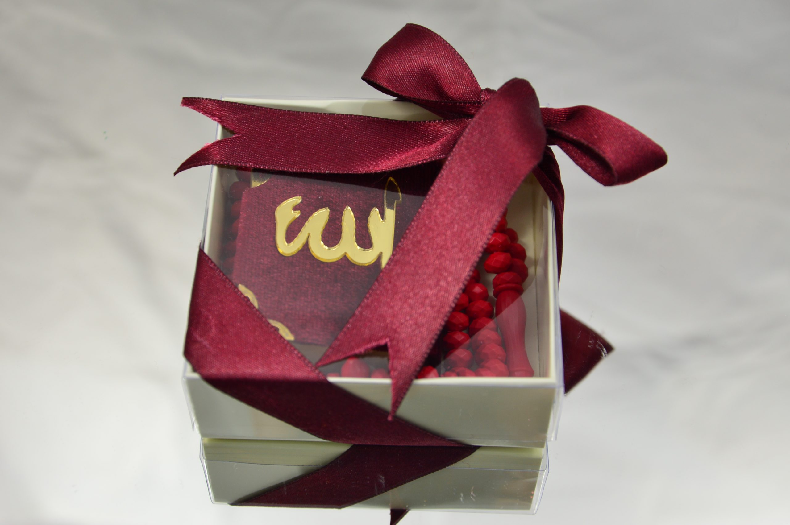 Ces belles petites boites contenant un petit Coran (entier) ainsi qu’un chapelet seront des cadeaux qui raviront vos invités.